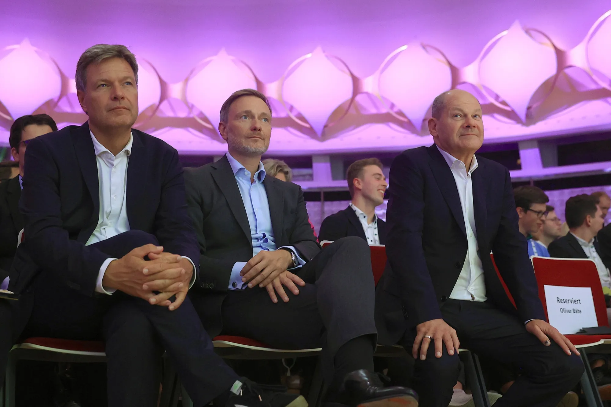 罗伯特·哈贝克,德国经济和气候部长,财政部长克里斯蒂安·林德纳和总理奥拉夫·肖尔茨在九月份柏林的初创企业论坛上。摄影师:克里斯蒂安·博奇/Bloomberg德国经济,欧洲的工业引擎,自林德纳和总理奥拉夫·肖尔茨于2021年上任以来,已经连续两个季度 未能增长,该集团发现自己在开发 下一代技术的斗争中全面落后于美国和中国, 旗舰绿色转型正遭到选民和 极右翼的反对。