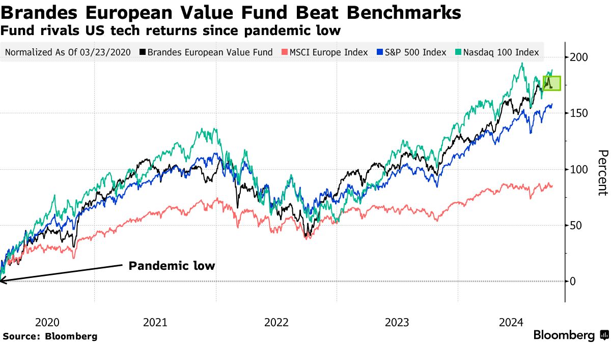 摄影师:克谢尼亚·库列什娃/彭博社欧洲表现最佳的股票基金之一在没有投资于 Nvidia公司 或 苹果公司 的情况下,匹配了美国科技股的急剧上涨——而是通过购买一些该地区最被低估的股票。