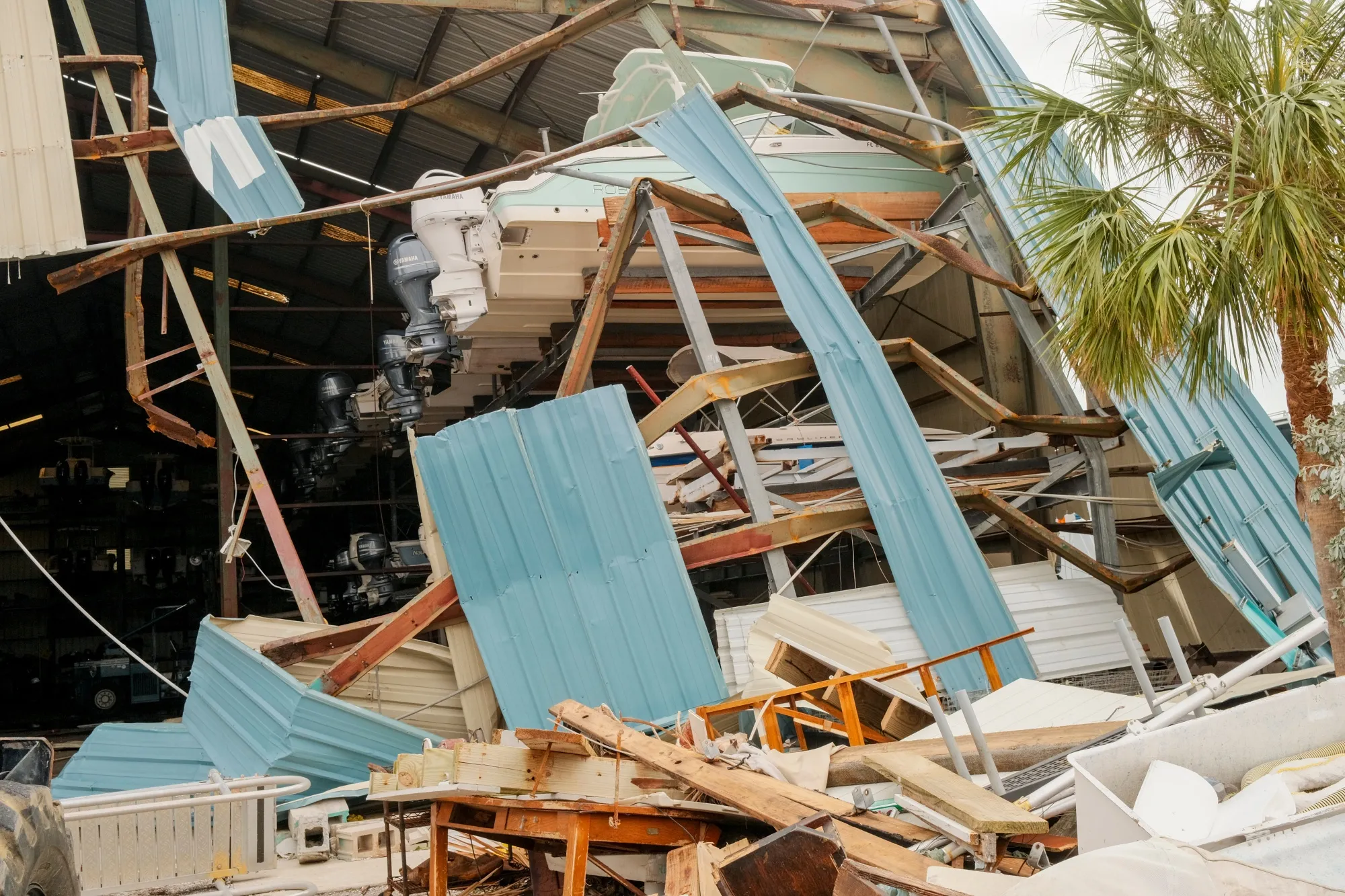 佛罗里达州圣彼得海滩被飓风海伦和米尔顿损坏的一家餐厅。摄影师:特里斯坦·维洛克/彭博社三个月前,闪电划过,风速达到每小时200英里,斯蒂芬·皮图克在另一场巨型风暴——飓风贝里尔中与一架75吨的螺旋桨飞机搏斗。皮图克是一名飓风猎人,是一名精英的美国空军飞行员,他飞入地球上最猛烈的天气中。他的飞机在7月3日的凌晨飞入贝里尔时,下降了令人作呕的千英尺,飞越加勒比海。