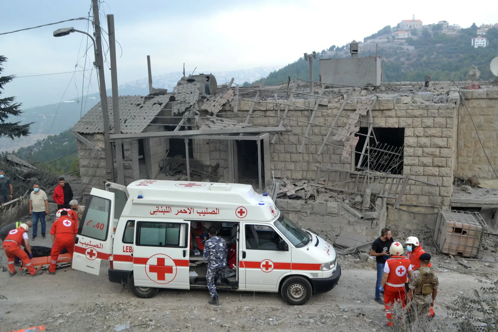 黎巴嫩红十字会的急救人员在黎巴嫩艾托以色列空袭现场将受害者送入救护车,时间为10月14日。摄影师:法提赫·阿尔-马斯里/法新社/盖蒂图片社以色列承诺对10月1日来自伊朗的导弹袭击进行重大报复,具体如何和何时进行的讨论一直保密。大约200枚弹道导弹的发射大部分被以色列的空中防御系统拦截,尽管有 财产损失是由于拦截碎片造成的。