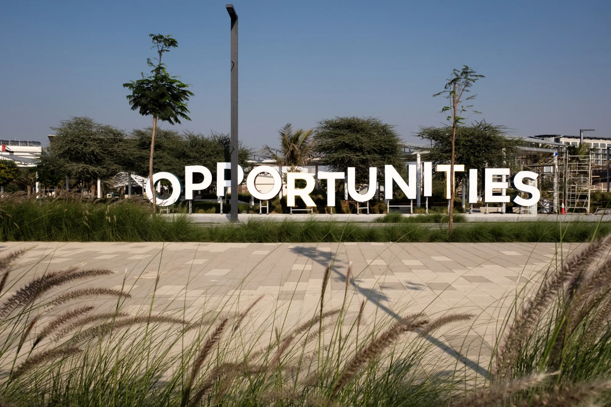 阿布扎比,阿拉伯联合酋长国郊区的“机会”标志。