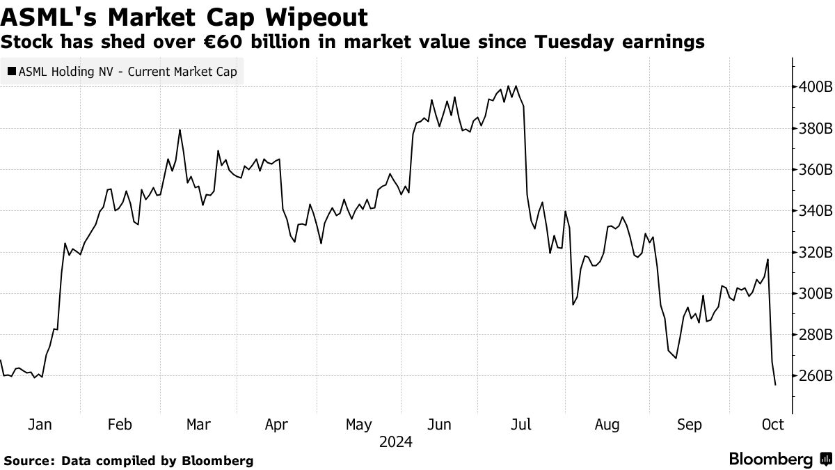 观看:ASML控股公司的股票在预订的订单仅为分析师预期的一半后,创下26年来最大跌幅。