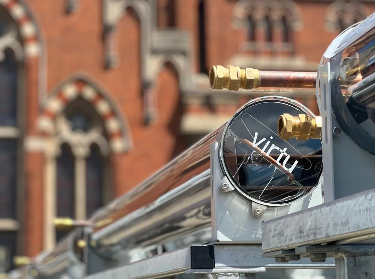 安装在英国图书馆屋顶上的Naked Energy Virtu混合太阳能热收集器单元。来源:Naked EnergyWilliams补充说,这950个太阳能热气缸覆盖了图书馆屋顶的712.5平方米,且比太阳能电池板更不显眼,使其更容易被规划部门接受。英国图书馆是一座受保护建筑,对影响外观的修改和增建有严格限制。