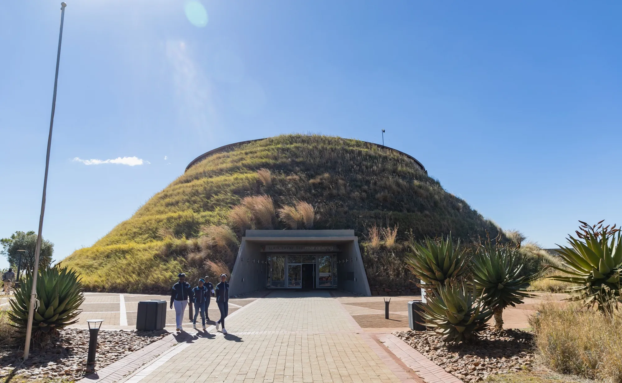 2024年6月7日,南非豪登省人类摇篮世界遗产区的马罗彭展览中心外的学生。