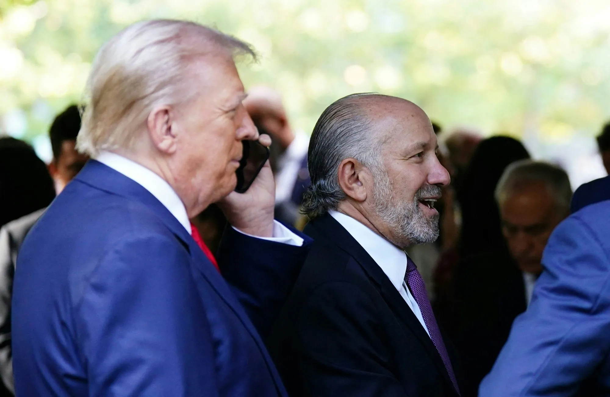 霍华德·卢特尼克和唐纳德·特朗普在纽约市“零点”世界贸易中心的纪念仪式上,时间是9月11日。