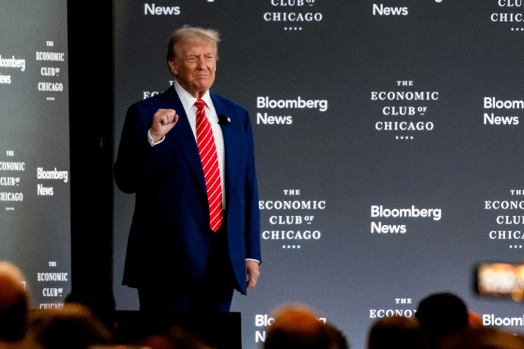 前美国总统和共和党总统候选人唐纳德·特朗普讨论了他的经济政策、移民问题以及2024年美国总统选举。彭博新闻社主编约翰·米克尔斯韦特在与芝加哥经济俱乐部的活动中采访了特朗普。