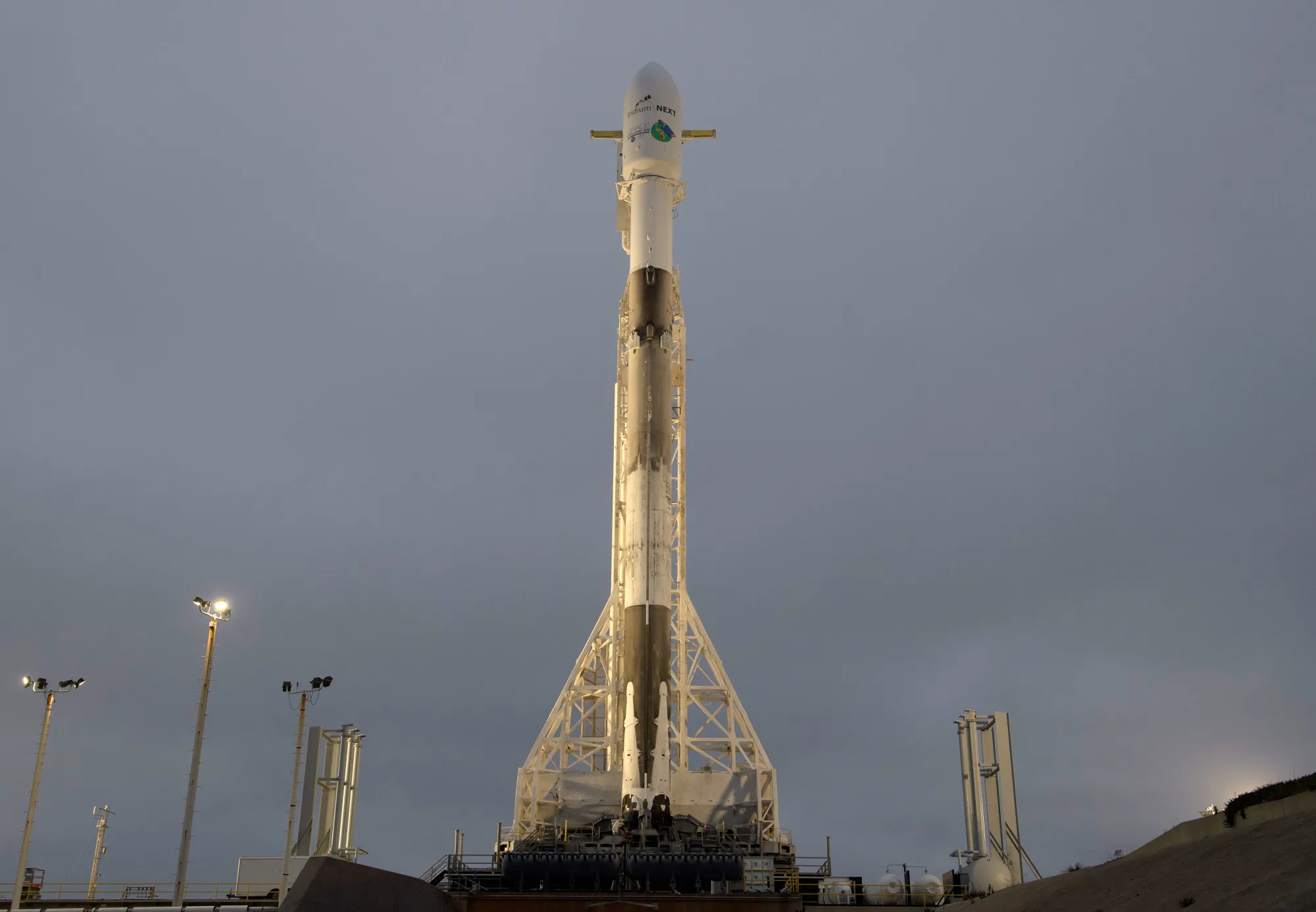 一枚SpaceX的猎鹰9号火箭在美国太空部队位于南加州的发射场上被看到。(照片由Bill Ingalls/NASA通过Getty Images提供)