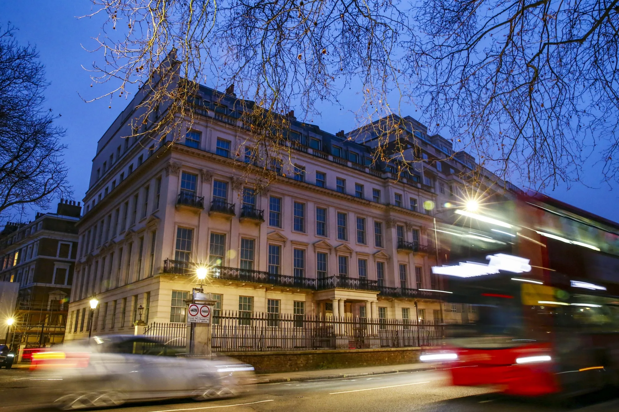 这座位于伦敦的豪宅位于2-8a Rutland Gate,以£2.1亿($2.74亿)成交。摄影师:Hollie Adams/Bloomberg该物业的买家最初似乎是房地产大亨张忠桥,他是许的长期朋友。英国公司的文件后来显示,参与购买的英属维尔京群岛公司的实际拥有者是丁。
