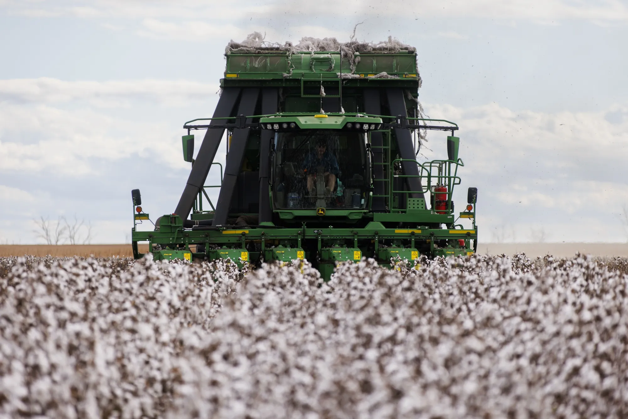 一名工人在昆士兰州的古恩迪温迪农场收割棉花。