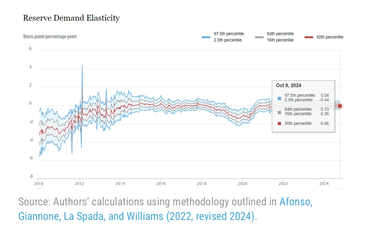 周四发布的 准备金需求弹性的初步估计显示,截至10月11日,准备金仍然充足,纽约联邦储备银行的数据显示。这些数据提供了最新证据,表明美国中央银行可以通过其 量化紧缩计划继续从系统中移除流动性。