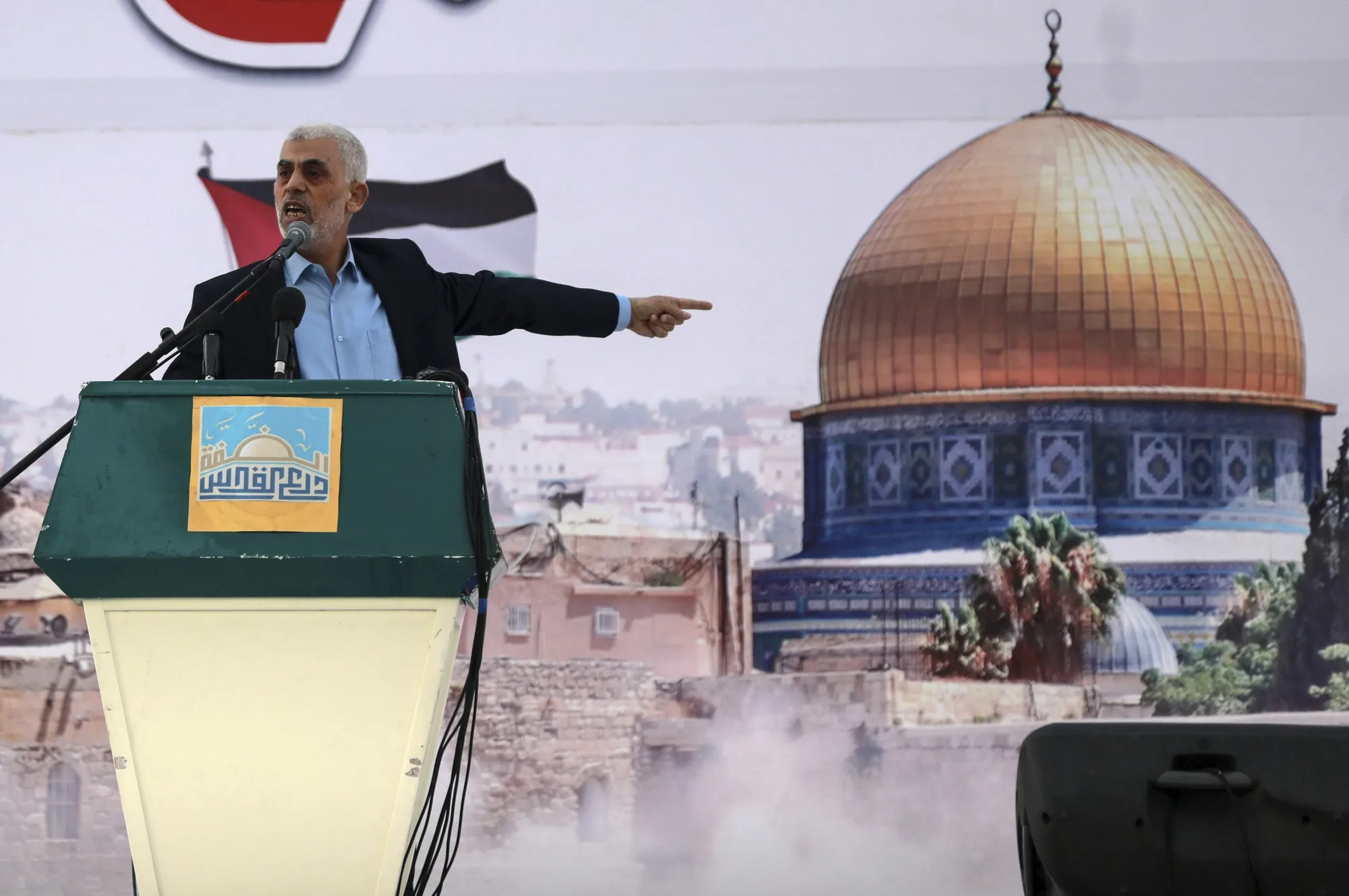 辛瓦尔在举行的抗议活动中,以纪念阿尔-库兹(耶路撒冷)日。摄影师:马吉迪·法提/盖蒂图片社在2011年,当以色列试图解救一名被哈马斯在加沙扣押的士兵时,辛瓦尔参与了谈判,提出了超过1000名巴勒斯坦囚犯的交换名单。他的名字在其中。