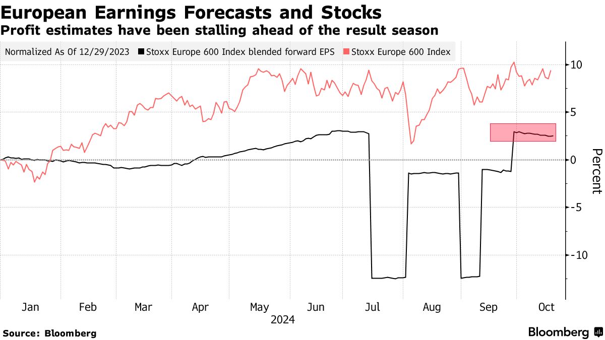 随着投资者消化第三季度财报季的动荡开局,欧洲股票在十月份趋于稳定。一些知名公司未能达到预期,尤其是LVMH,其 销售未达标,以及ASML,其报告的 订单令人失望,尤其引发了对来自关键中国市场产品需求的担忧。