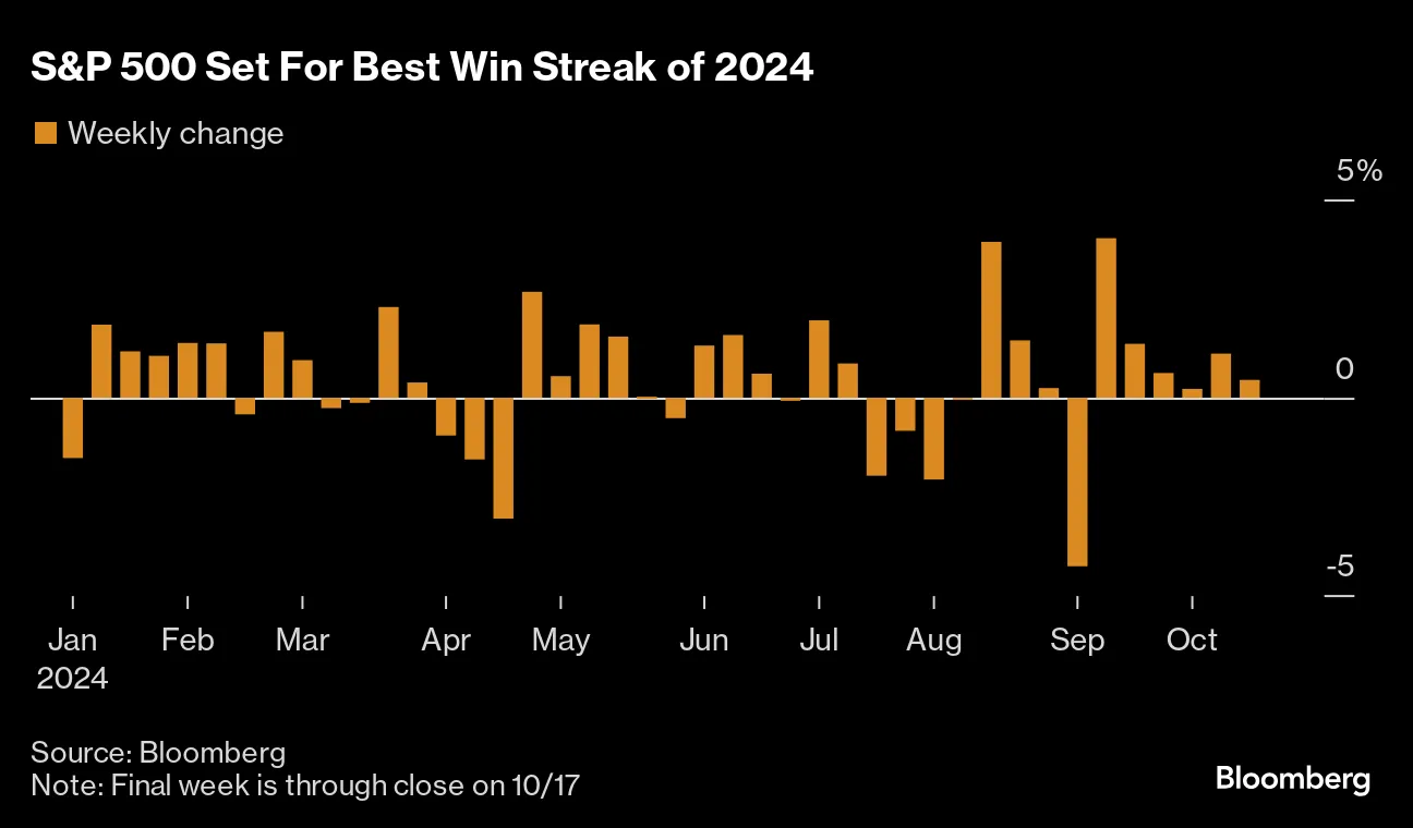 例如,周四的数据表明,美国消费者和劳动市场总体表现良好。9月零售销售强于预期,而失业救济申请的数量降幅超出经济学家的预期。迄今发布的财报中,大多数在销售等指标上都超出预期。银行几乎一致地对其前景发布了强劲的指引。