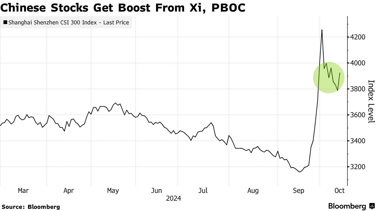 他的声明正值市场受到中国人民银行的提振,该行 启动了一项专门的再贷款机制,以帮助公司回购股票,并提供一个交换机制,为机构投资者提供流动性以购买股票。这些发展表明人民银行正在兑现其在九月底的重大简报会上宣布的承诺。