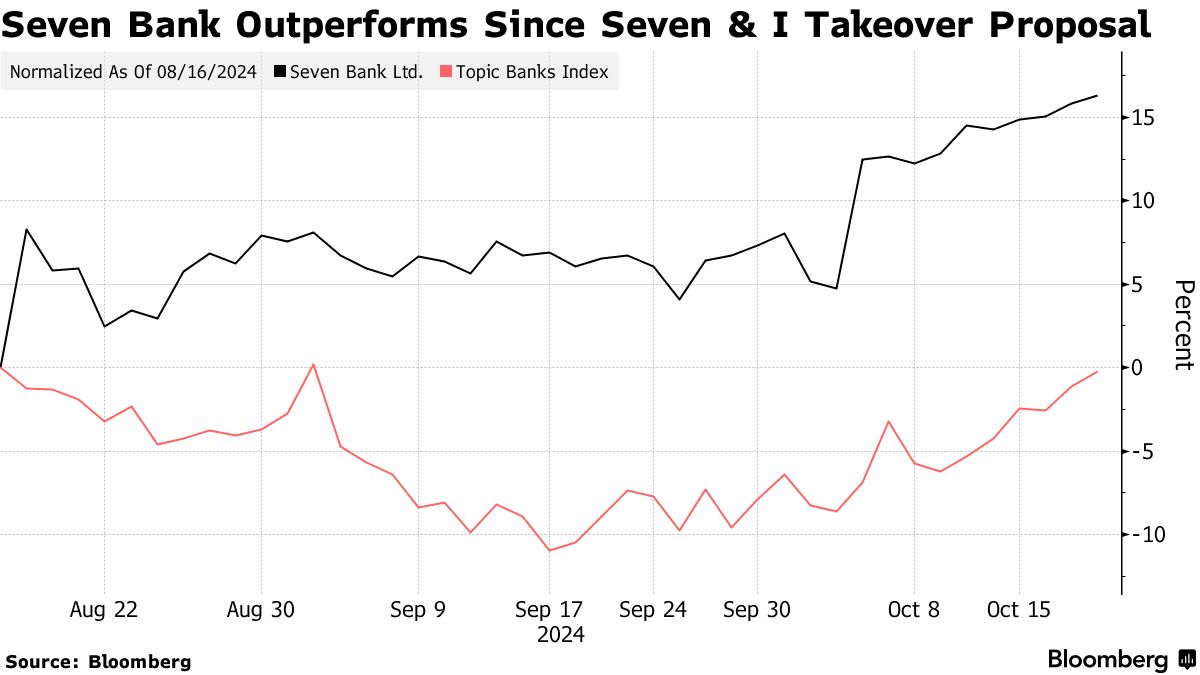 Seven Bank Ltd. 自8月16日以来上涨了约16%,就在 Alimentation Couche-Tard Inc. 对Seven & i的收购提案公开之前,远远超过了Topix指数中的所有其他银行。