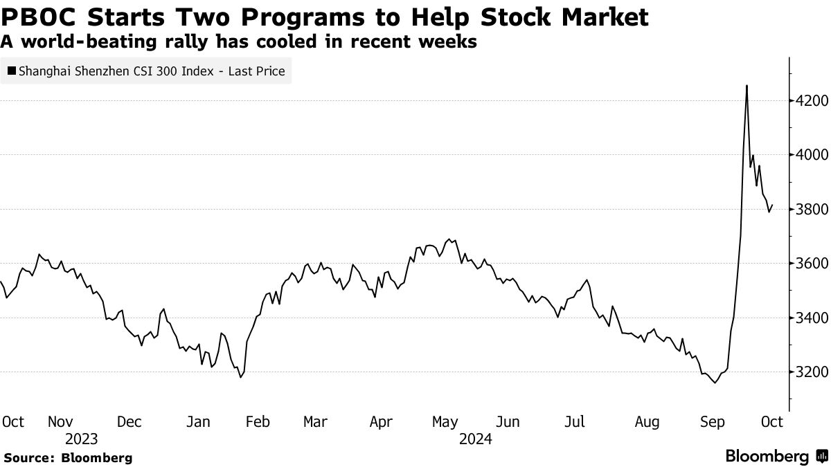 这两个计划是在9月底的一个重磅新闻发布会上由人民银行行长潘功胜公布的,他概述了一系列措施以支撑经济和股市。最初,这使得股市在历史性反弹中飙升,尽管随着投资者等待进一步的刺激措施,如增加政府支出,涨幅有所回落。