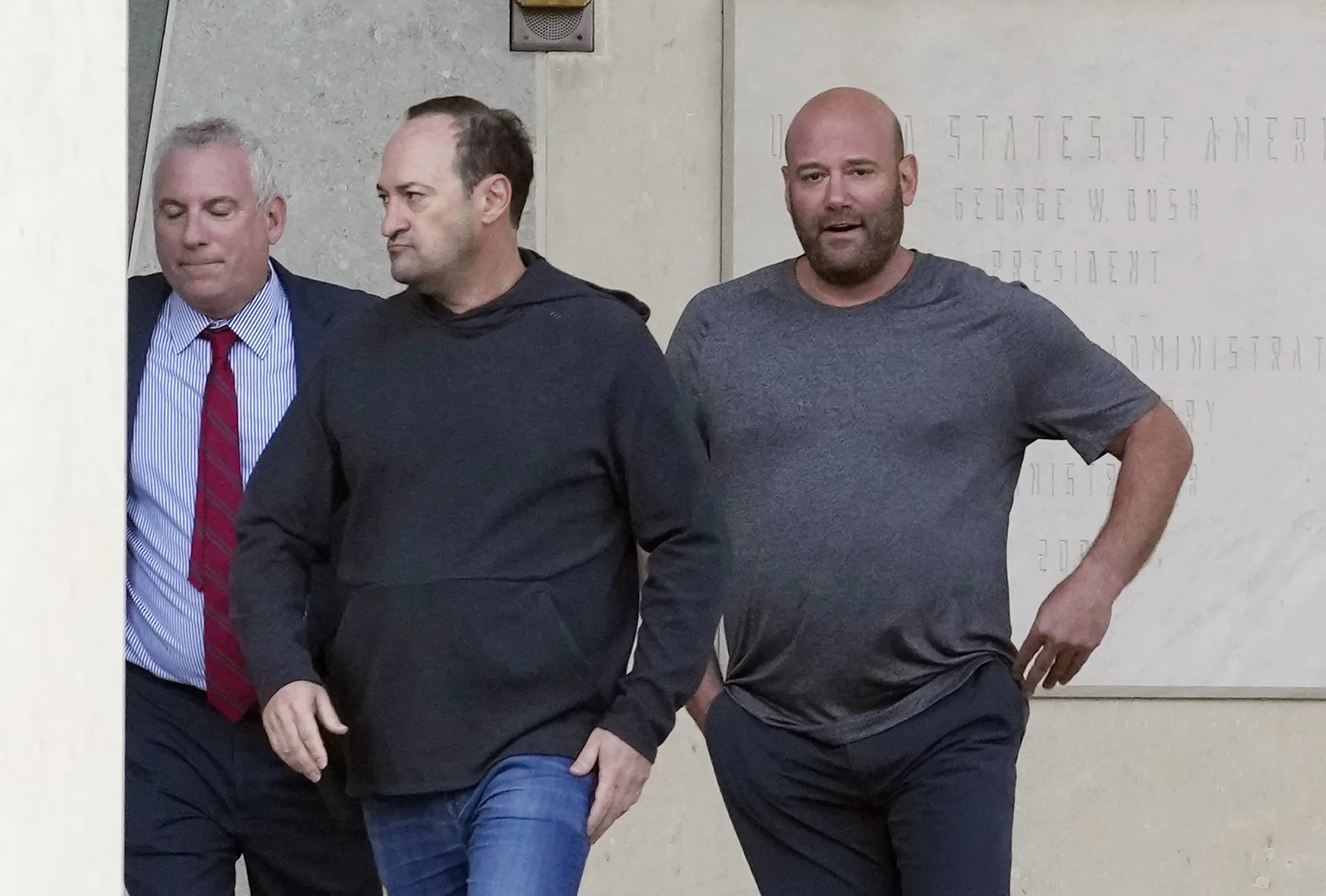 迈克尔·施瓦茨曼(Michael Shvartsman),中间,和他的兄弟杰拉尔德(Gerald),右侧,2023年离开迈阿密的联邦法院。
