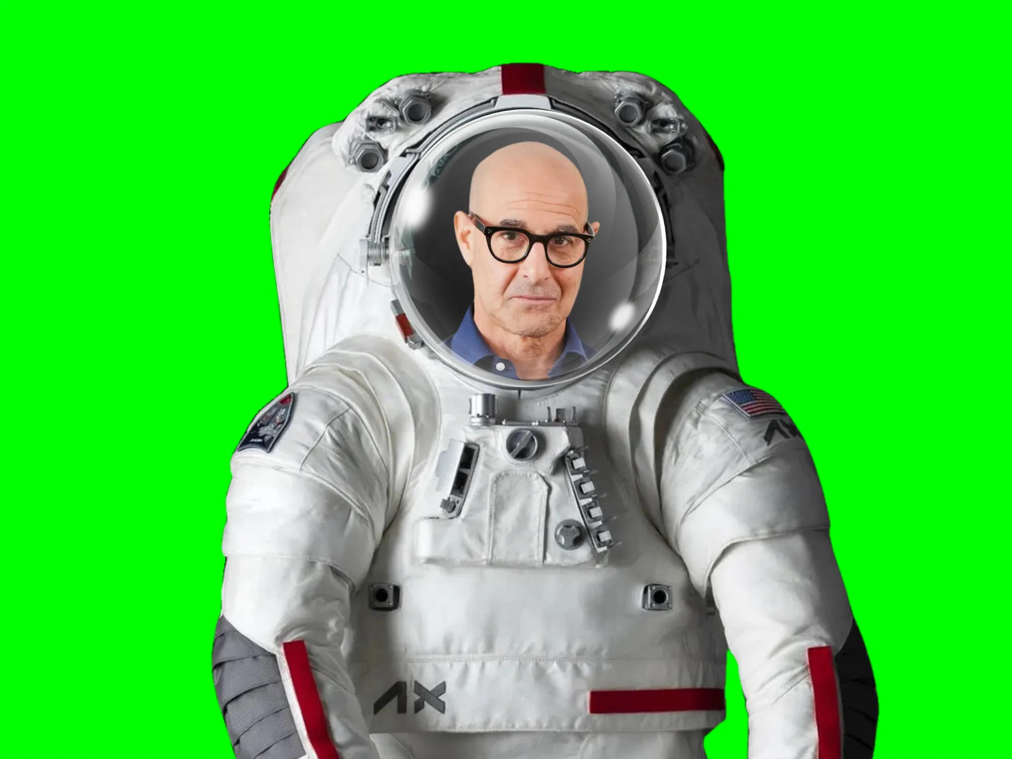 也许,斯坦利·图齐最好还是留在地球上。也许NASA可以借给他一套普拉达宇航服,让他在绿幕前穿着: