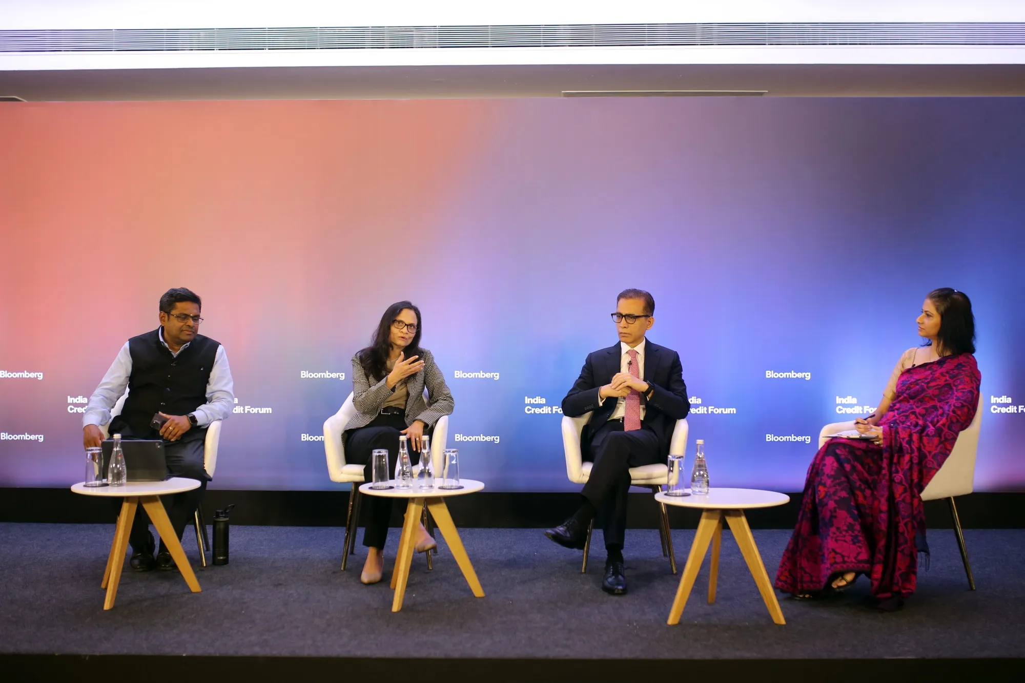 (从左到右)ICICI银行全球市场、销售、交易和研究负责人Prasanna Balachander,Ascertis Credit Group首席执行官Kanchan Jain,以及巴克莱银行首席执行官Pramod Kumar与彭博社的Jeanette Rodrigues在印度信用论坛上交谈。摄影师:Dhiraj Singh/Bloomberg在 私人信贷中,这是一个 蓬勃发展的市场,印度正朝着其 第一个100亿美元的年份 迈进,因为当地的另类投资基金正在占据更小交易的更大份额,而 大型外国投资者 更倾向于较少的、大型交易。