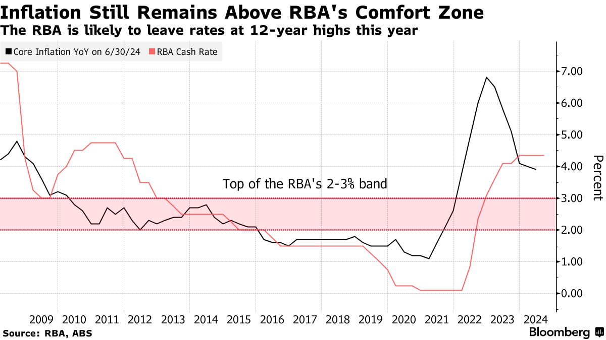 一些经济学家,包括国家顶级贷款机构CBA的经济学家,预计政策制定者下个月将转向更温和的语气。其他如加拿大皇家银行和花旗集团则预计RBA将继续发出利率 保持不变 的信号,直到它确信通货膨胀正朝着2-3%的目标可持续移动。