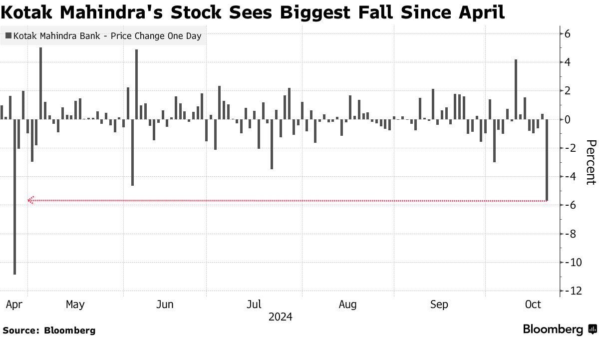 科塔克马欣德拉银行股票自四月以来最大跌幅,因利润空间受到挤压 - 彭博社
