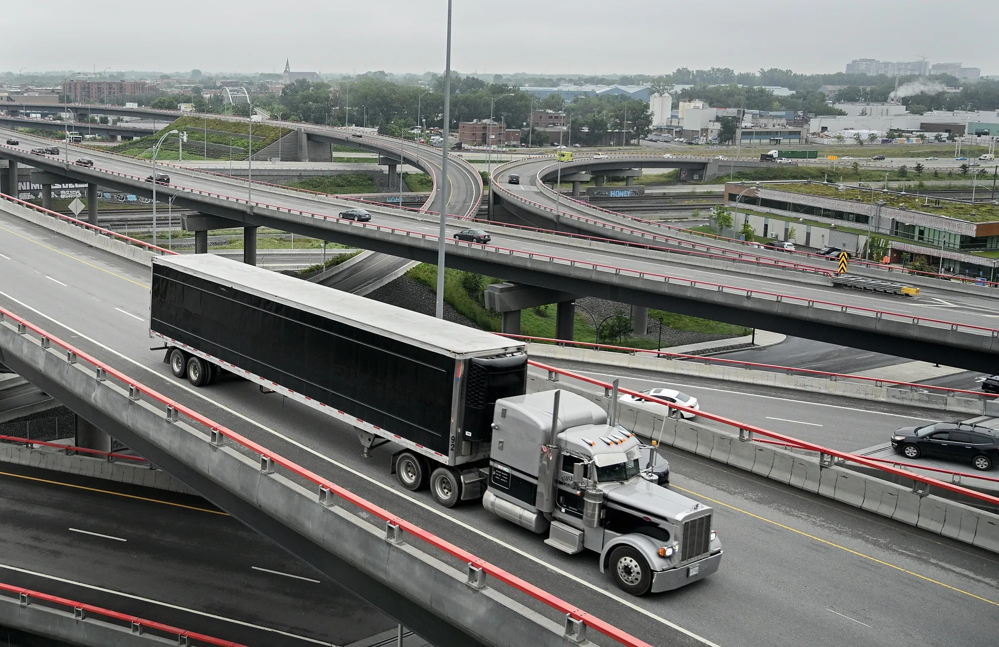 蒙特利尔的Turcot互通道上的一辆运输卡车。在第一季度,卡车司机是通过外国工人计划的高薪渠道最有可能被雇佣的职业。
