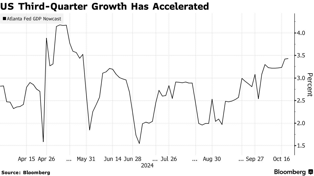 “底线是扩张仍在继续,”他在周六的研究报告中写道,强调亚特兰大联储目前估计第三季度GDP增长为3.4%。他认为美国将保持在无着陆轨迹上——经济持续增长,通货膨胀重新点燃。