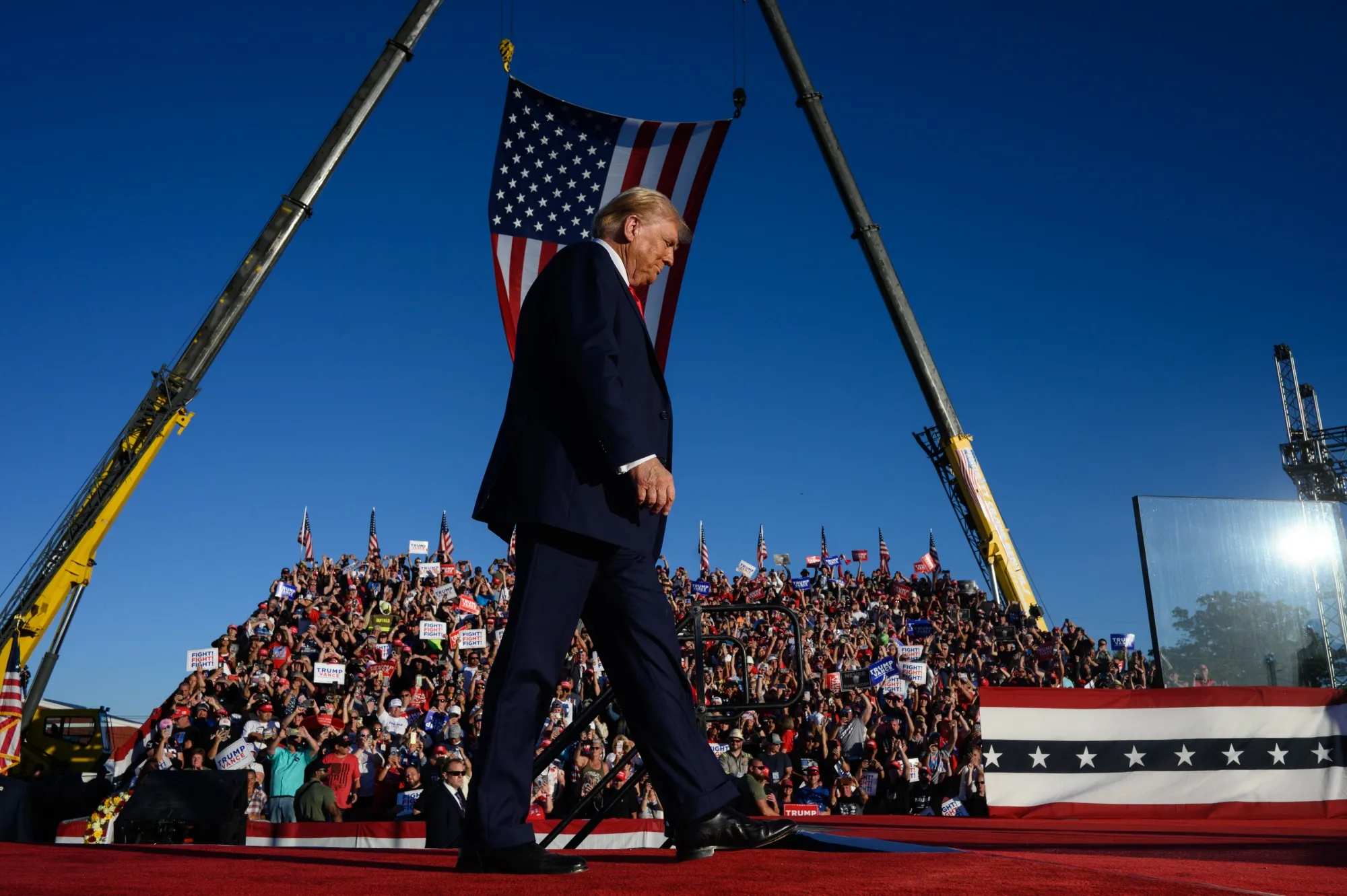 前美国总统唐纳德·特朗普在宾夕法尼亚州巴特勒的竞选活动中,时间为10月5日。