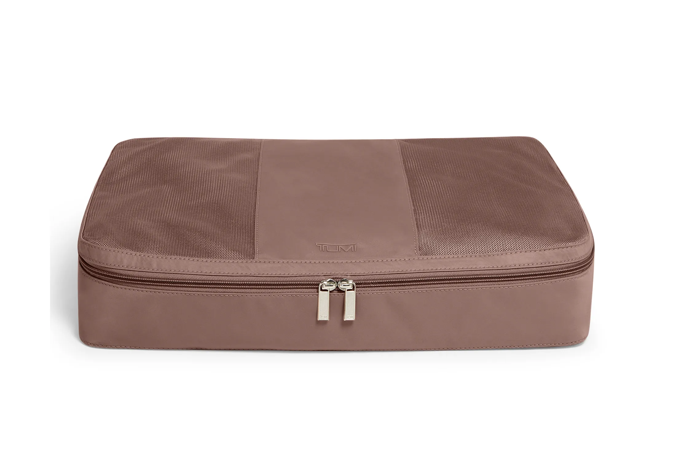 Tumi的新包装立方体。**你的打包是否足够出色?**经常飞行的人知道行李来来去去,但真正的组织技巧是放在里面的立方体。市场上最耐用的选择,采用防弹尼龙而不是通常的聚酯纤维,来自位于新泽西州爱迪生的高端旅行品牌Tumi。该公司推出了一套黑色和浅紫色的立方体(如图所示)。这三种尺寸(起价95美元)的宽度从约10英寸到近18英寸,可以将衬衫、裙子和袜子整齐分开并折叠。小号和大号也有可折叠的隔板。