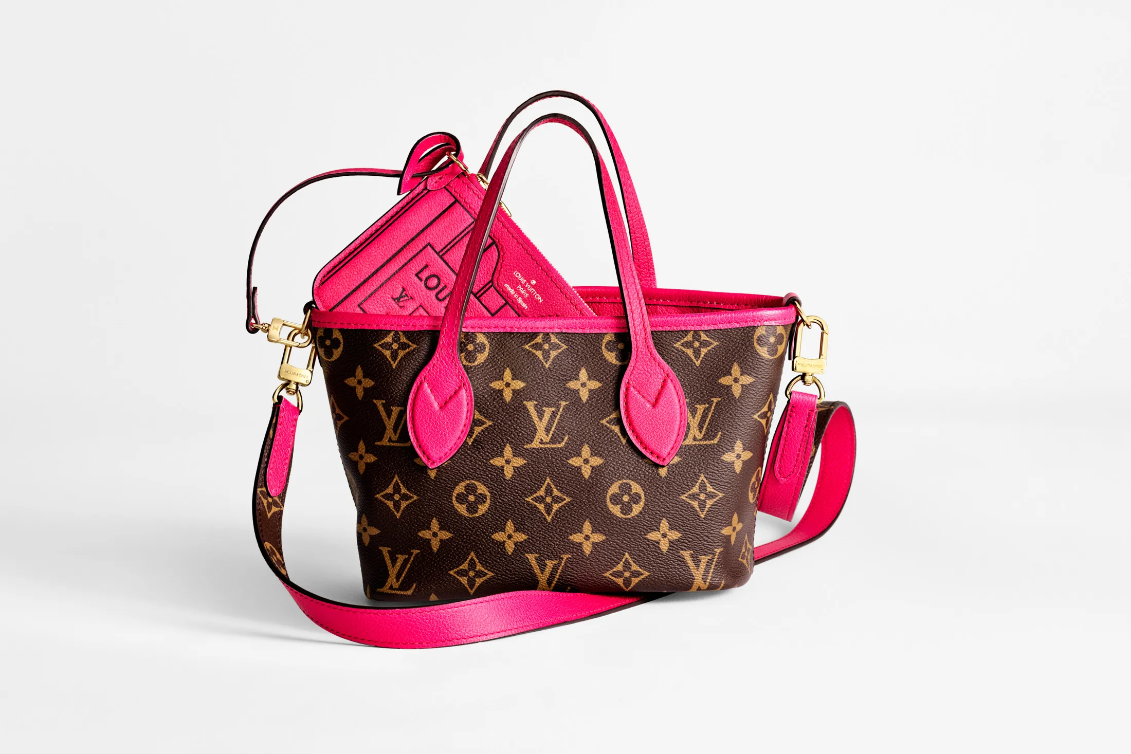 路易威登重新设计的Neverfull。翻转你的手提包路易威登的2300美元Neverfull自2007年发布以来,一直是女性出行的工作包。这一季它带来了一个新花样:内部可以翻转过来——揭示通常隐藏的图案。黄色帆布(左)和亮粉色版本是最有趣的。