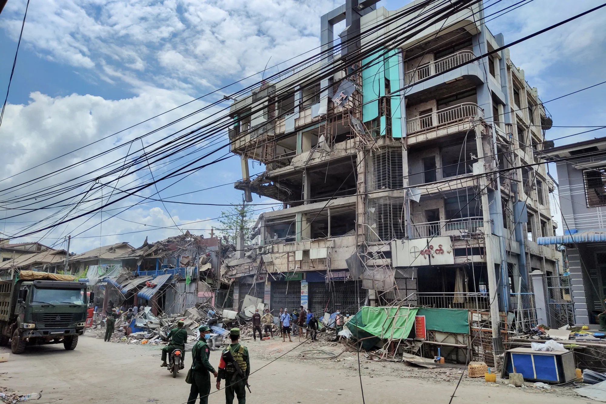 在9月24日缅甸军方对北部掸邦的轰炸后,毁坏的建筑。来源:法新社/盖蒂图片社“如果成功,这样的行动将为对内比都首都的攻击打开一条通道,对政权构成生存威胁,”本月由位于伦敦的国际战略研究所发布的评估中写道。“拉希奥的最近沦陷使缅甸军方处于自2021年政变以来最脆弱的状态。”