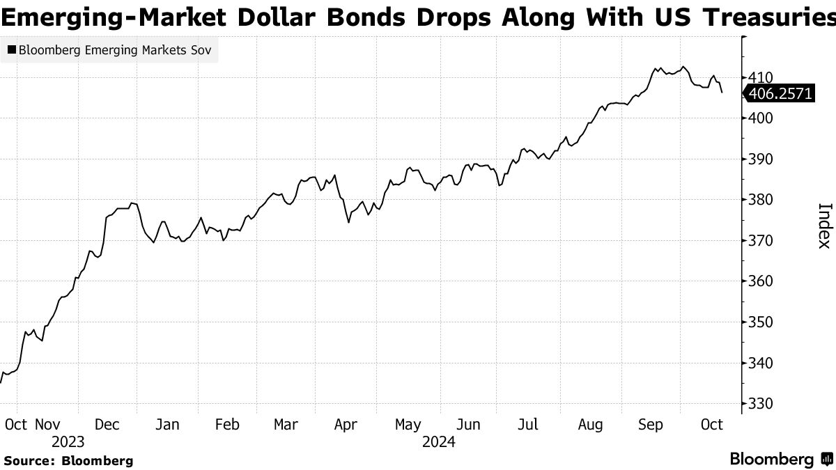 由于美国经济依然强劲,交易员们正在降低对激进降息的押注,本周美联储官员对宽松路径的语气也显得谨慎。油价上涨和美国总统选举后更大财政赤字的前景也增加了担忧。