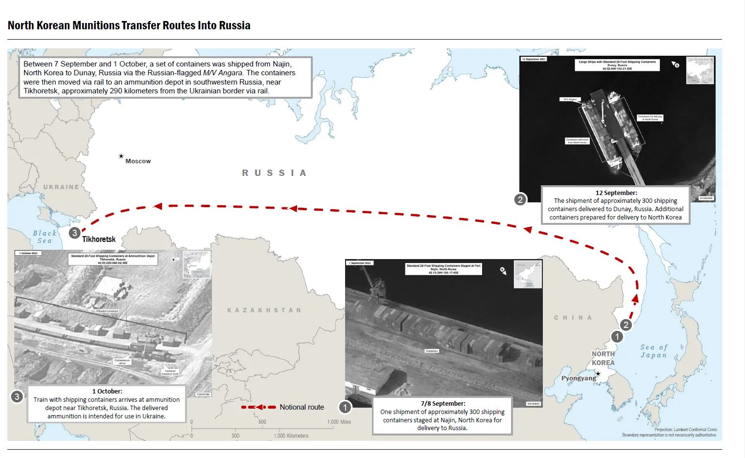 朝鲜军火运输路线进入俄罗斯来源:白宫此外,向乌克兰部署部队将给朝鲜提供一个机会,以测试其军事战略和武器,对抗使用与其敌人韩国相似装备的对手。自朝鲜战争 结束于1953年以来,朝鲜很少将部队派往国外。在少数几次派遣中,通常是派遣小规模部队,例如在1970年代末和1980年代初,朝鲜向安哥拉派遣了约3000名军事人员参与其内战。金正恩政权在2019年派遣了约800名军事人员和劳工援助叙利亚政府,根据总部位于首尔的专业新闻服务NK News引用的一份联合国文件。朝鲜还在越南战争期间进行了 有限的飞行任务,以协助对抗美国和南越军队。