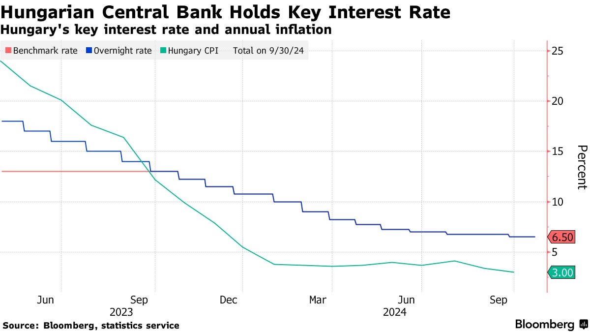 匈牙利上个月恢复了宽松,将关键利率下调了四分之一点,仍与罗马尼亚并列为该地区最高的基准利率。这一举措是在经历了一年多的宽松周期后进行的,8月份仅有短暂的暂停。