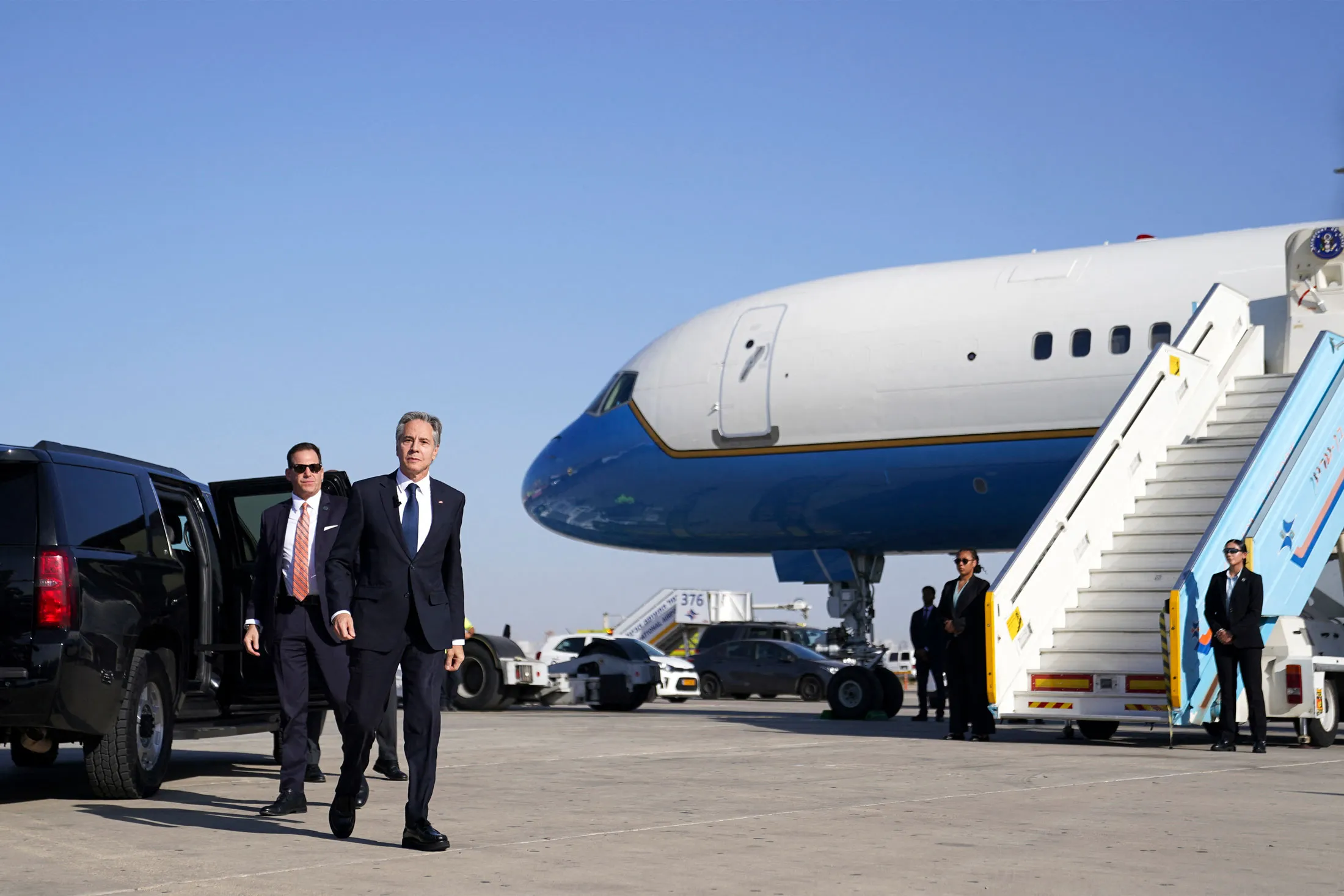 安东尼·布林肯于10月23日离开以色列前往沙特阿拉伯。摄影师:内森·霍华德/法新社/盖蒂图片社美国总统乔·拜登的首席外交官周三前往沙特阿拉伯,继续推动以色列与伊朗支持的武装分子之间的广泛停火。