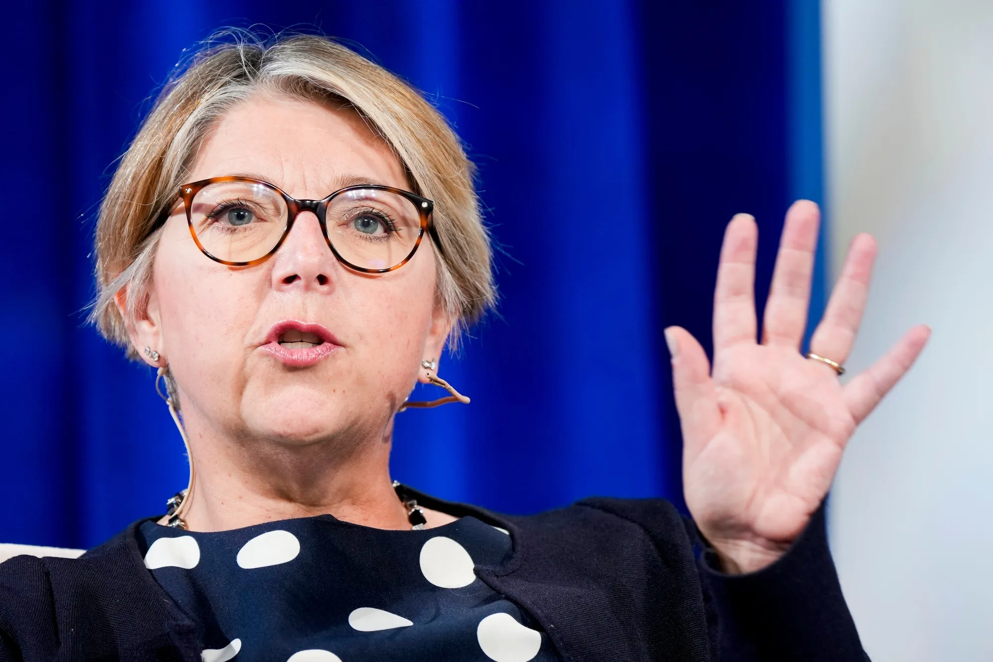 莎拉·布里登在华盛顿特区国际货币基金组织和世界银行年会上发言,时间是10月23日。