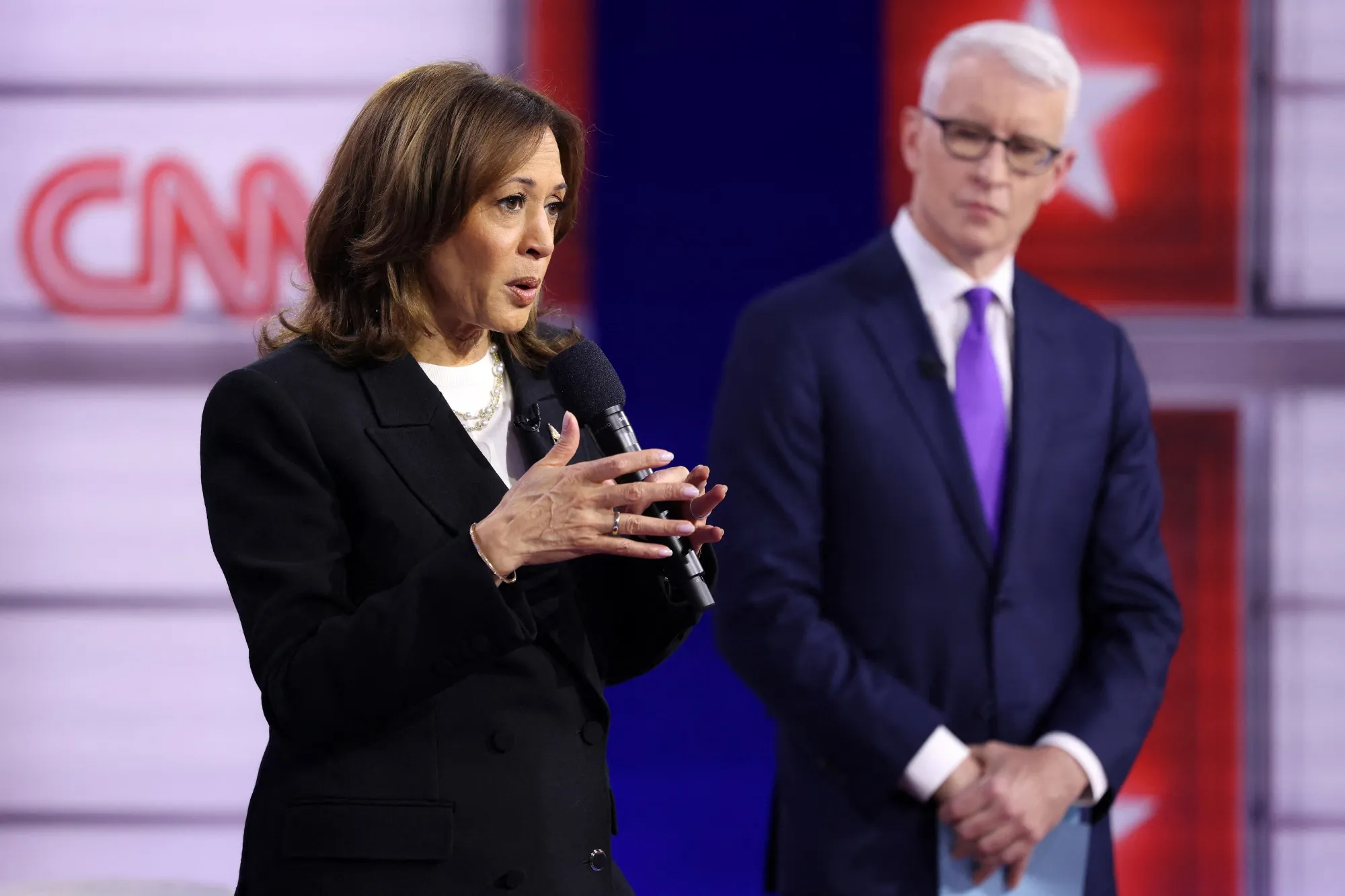 卡马拉·哈里斯在10月23日的CNN市政厅会议上发言,地点在宾夕法尼亚州。