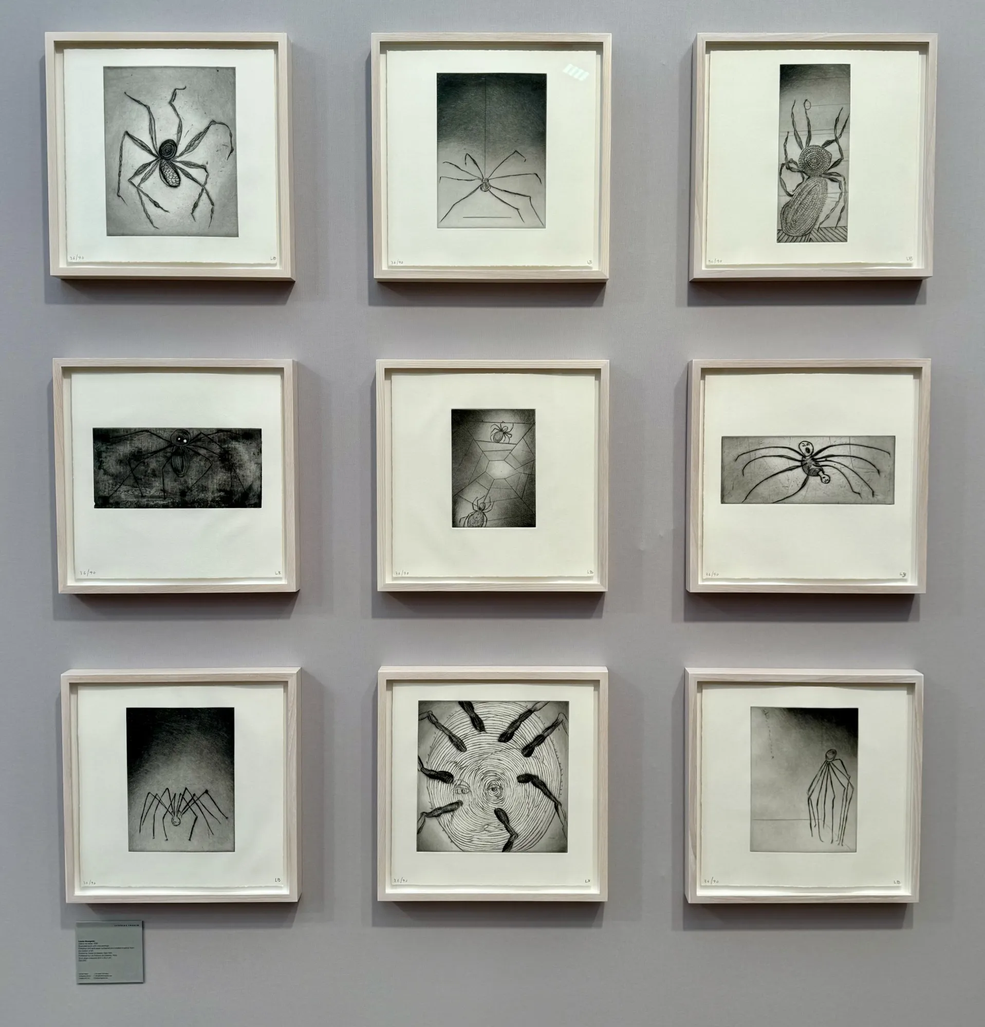 在今年的弗里兹大师展上,这个在摄政公园举行的年度艺术博览会上,九幅蜘蛛的印刷品让我屏住了呼吸。这些蛛形纲动物是路易丝·布尔乔亚的完整系列 献给我的母亲,她用这些令人毛骨悚然的生物来描绘与母亲的关系。她对这一主题最著名的表达是位于毕尔巴鄂古根海姆博物馆和伦敦泰特现代艺术馆的巨大雕塑。