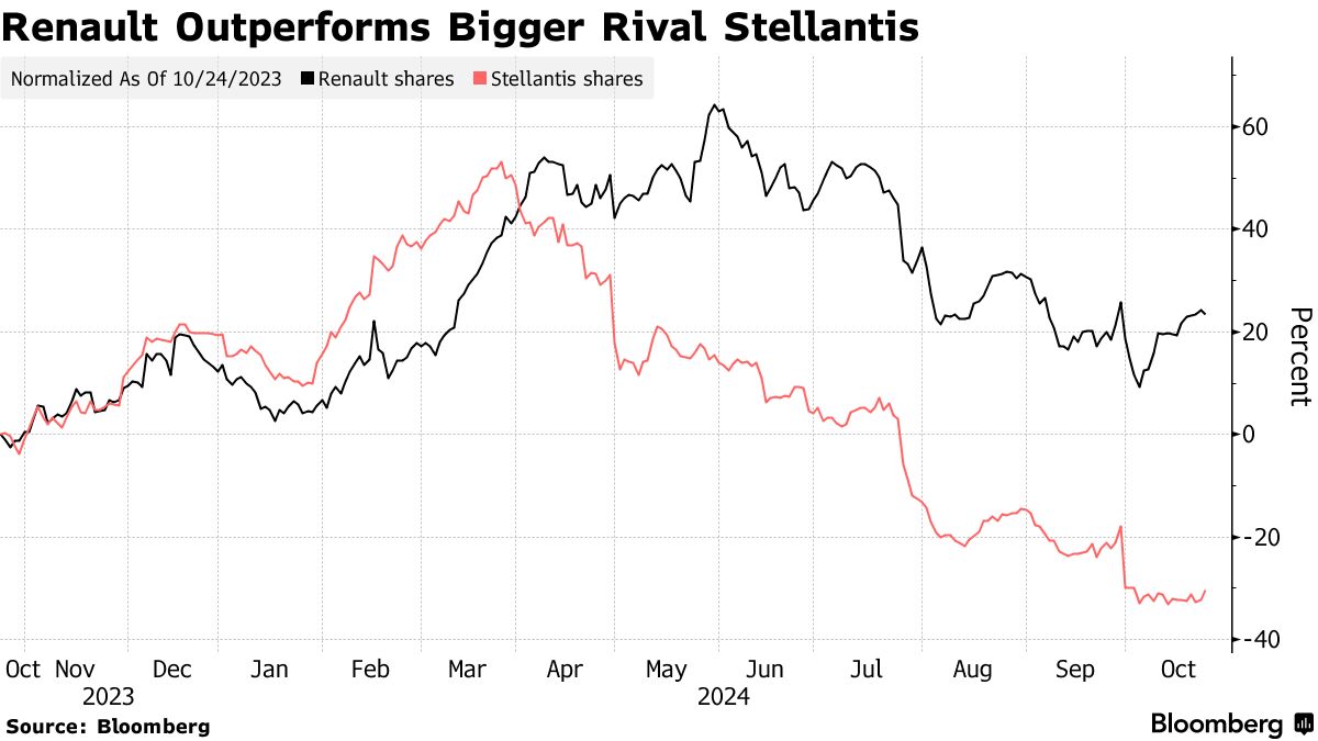 在包括斯特兰蒂斯、大众和宝马在内的同行最近几周发出盈利警告后,雷诺成为了一个例外,原因包括电动车需求放缓、供应商问题以及中国销售下滑。雷诺首席执行官Luca de Meo最近几个月按时推出了几款新电动车,成功避免了一些延迟竞争对手车型的软件问题。