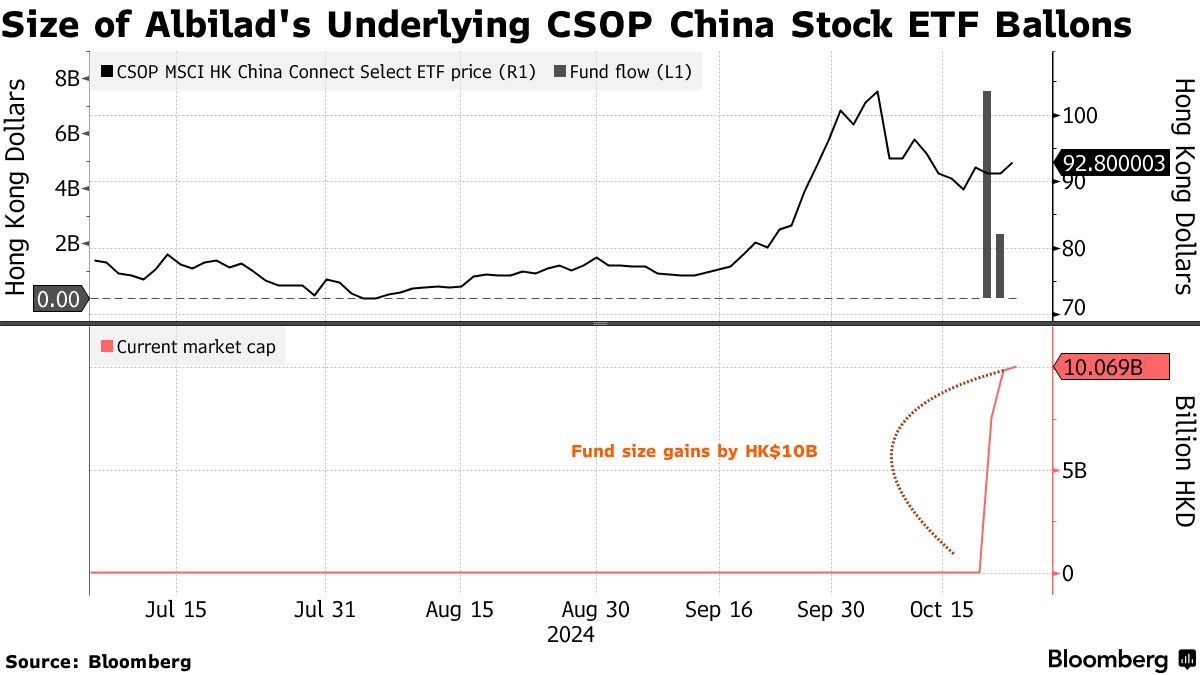 阿尔比拉德银行的证券部门截至周三为其 阿尔比拉德 CSOP MSCI 香港中国 ETF 筹集了100亿港元(13亿美元),根据该基金中国合作伙伴的社交媒体 账户。根据彭博社汇编的数据,该基金的规模超过了沙特阿拉伯交易所上市的任何同行。它将于下周三开始交易。