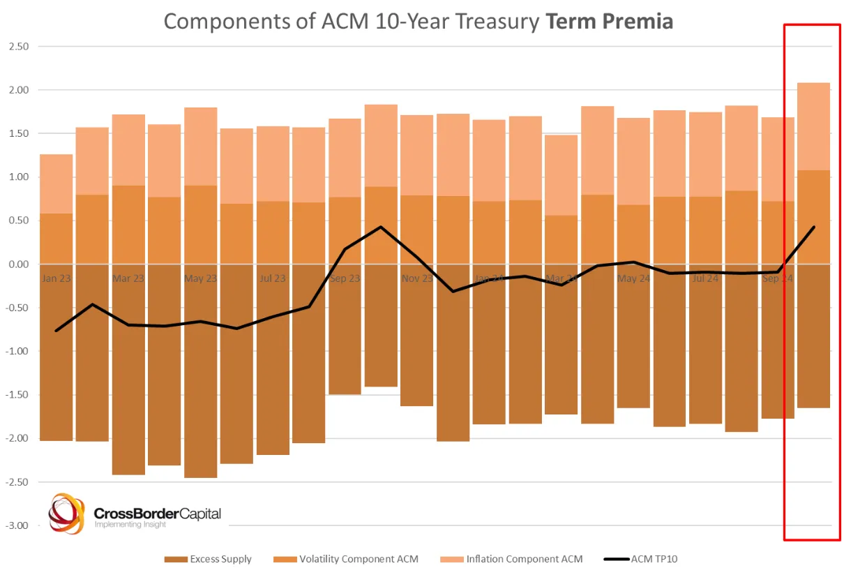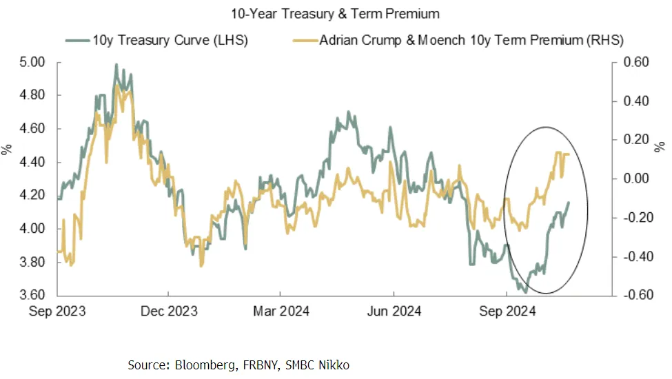 这加大了对长期收益率的上行压力,这就是为什么回归的期限溢价可以与唐纳德·特朗普可能再次当选总统的可能性竞争,以争夺收益率复苏的功劳。这也引发了一个问题,即为什么溢价现在会回归。