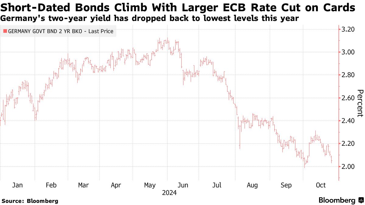 德国两年期国债收益率,作为对货币政策最敏感的指标,下降了多达八个基点,降至2.03%,为十月初以来的最低水平。交易者们还增加了对2025年降息幅度的预期。