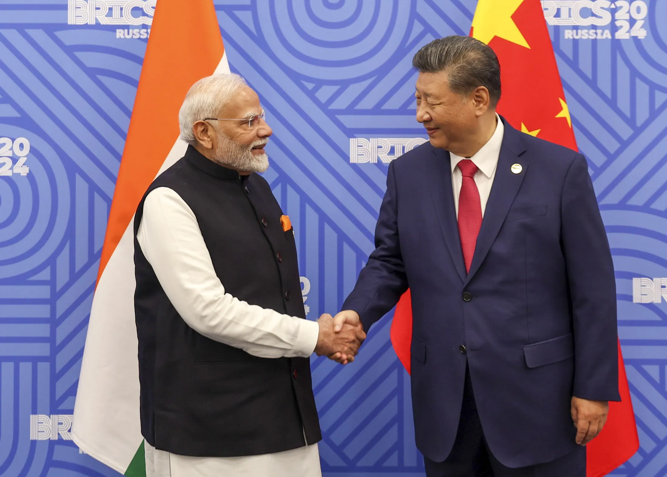 印度政府于10月23日在俄罗斯喀赞举行的金砖国家峰会期间发布的莫迪与习的照片。来源:印度政府信息与广播部,在X上两天后,习近平主席与印度总理纳伦德拉·莫迪在俄罗斯新兴经济体金砖国家峰会期间举行了自2022年以来的首次正式会晤,双方承诺稳定关系。