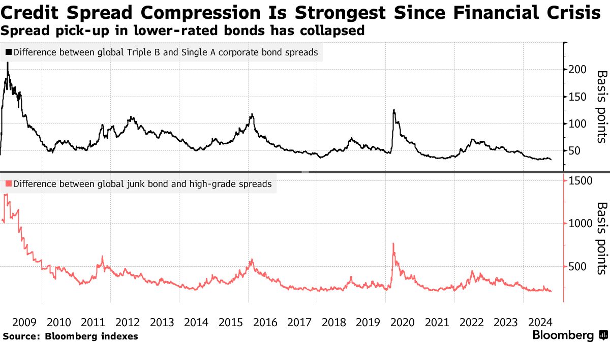 这一呼吁是在信用激增之后提出的,这使得持有低质量债券所获得的额外收益压缩到自全球金融危机以来的最低水平。这让一些投资者感到,他们没有得到足够的补偿,以应对从 政策不确定性 和 经济恶化 到 地缘政治紧张局势 的各种风险。