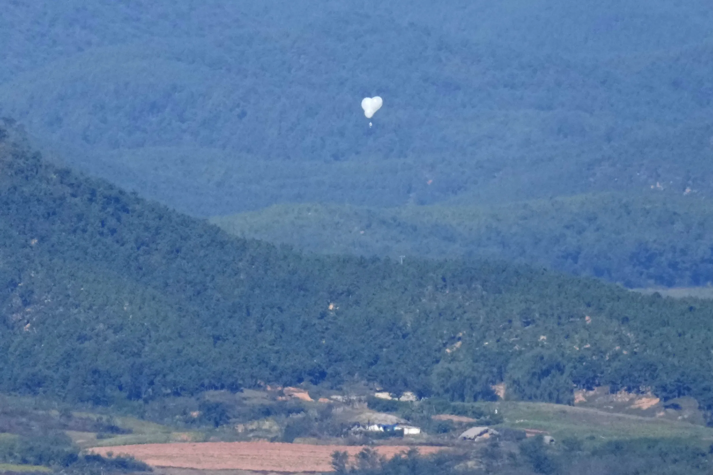 本月早些时候,在韩国坡州的统一观察站看到的朝鲜气球,靠近边界。