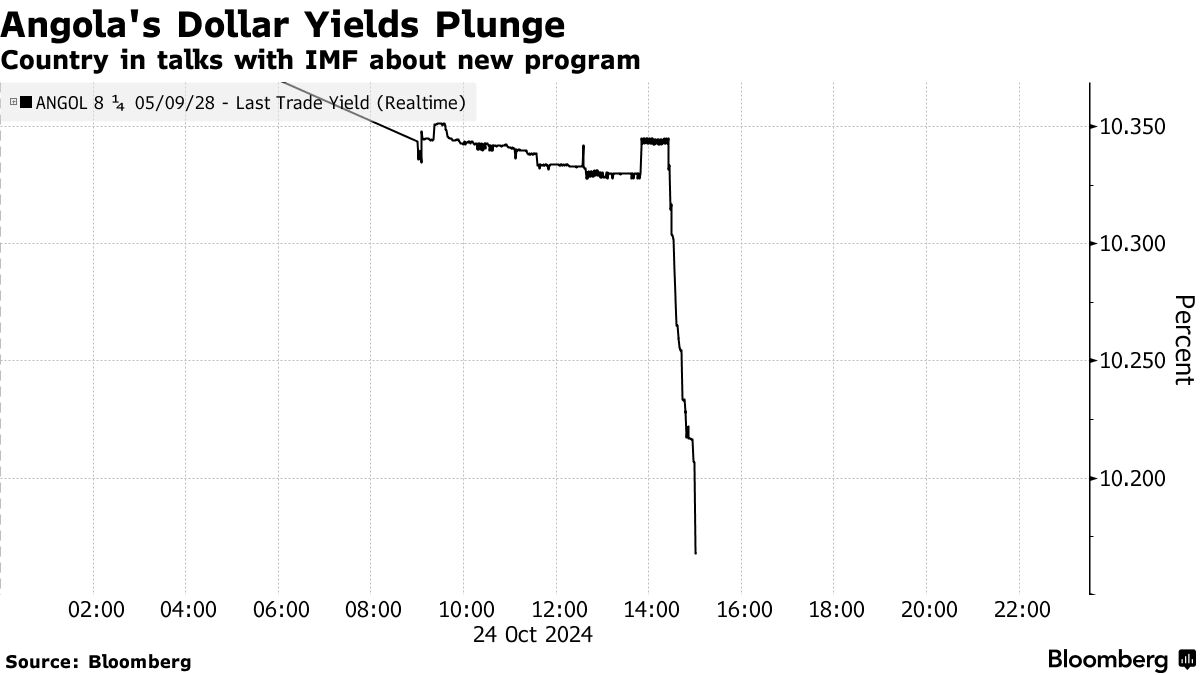 截至周四伦敦时间下午1:59,安哥拉2028年美元债券的收益率下降了20个基点,降至10.33%,这是三天以来首次下降。