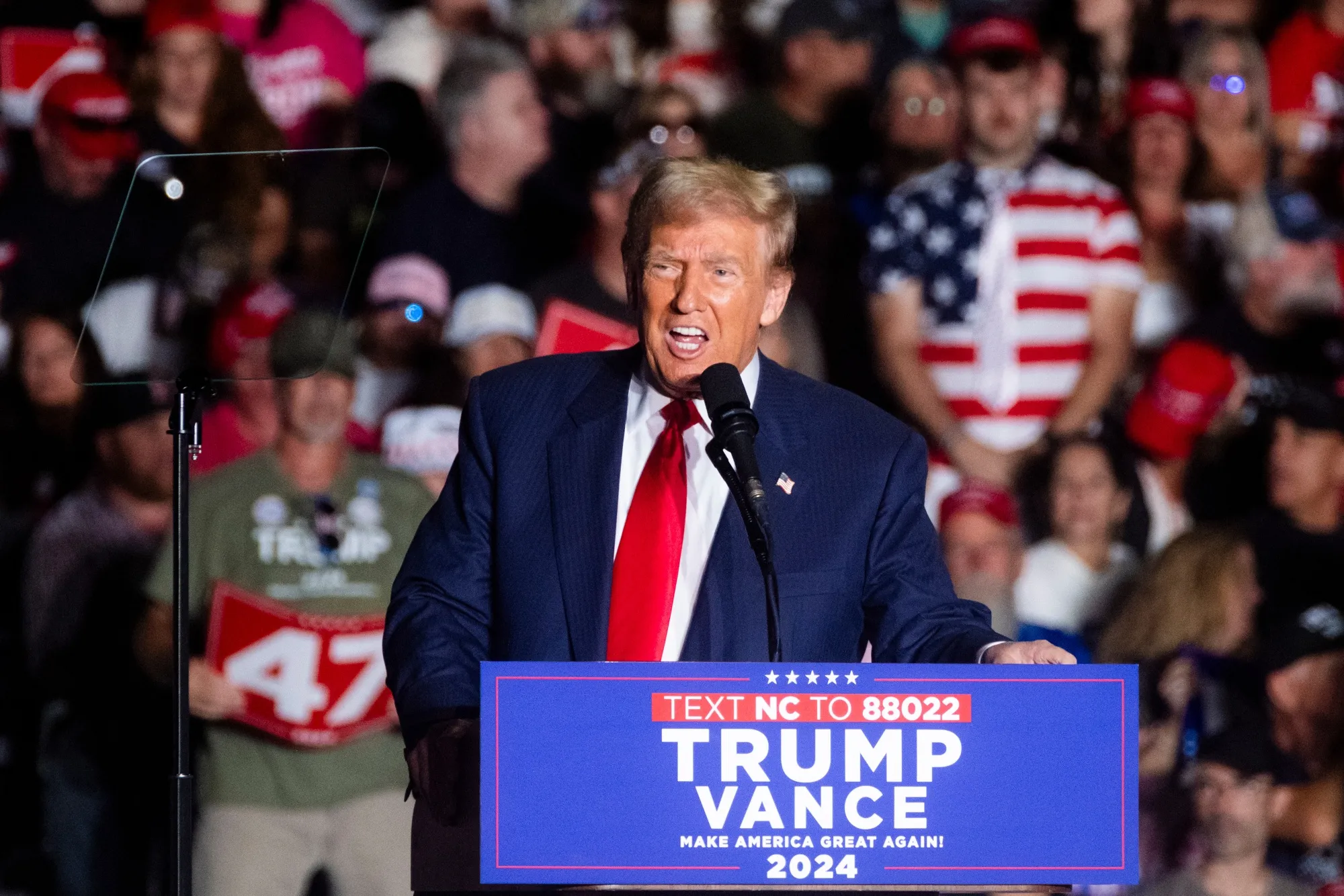 前总统唐纳德·特朗普在2024年10月于北卡罗来纳州格林斯伯勒的竞选活动中。