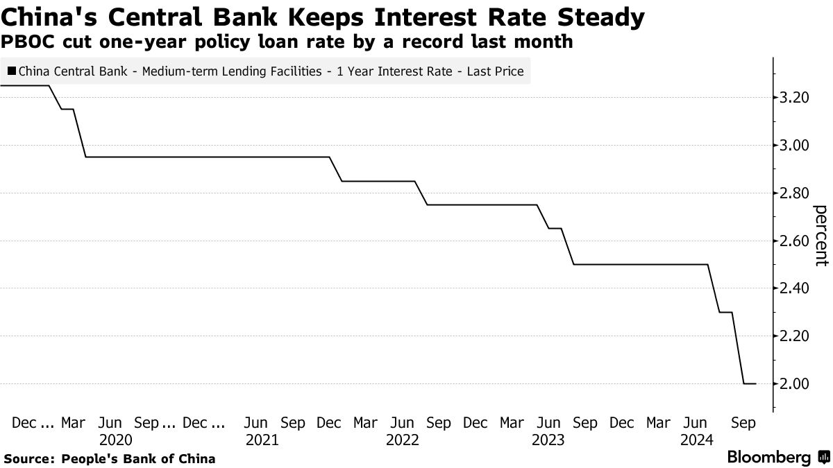 中国在创纪录削减后未削减政策利率 - 彭博社