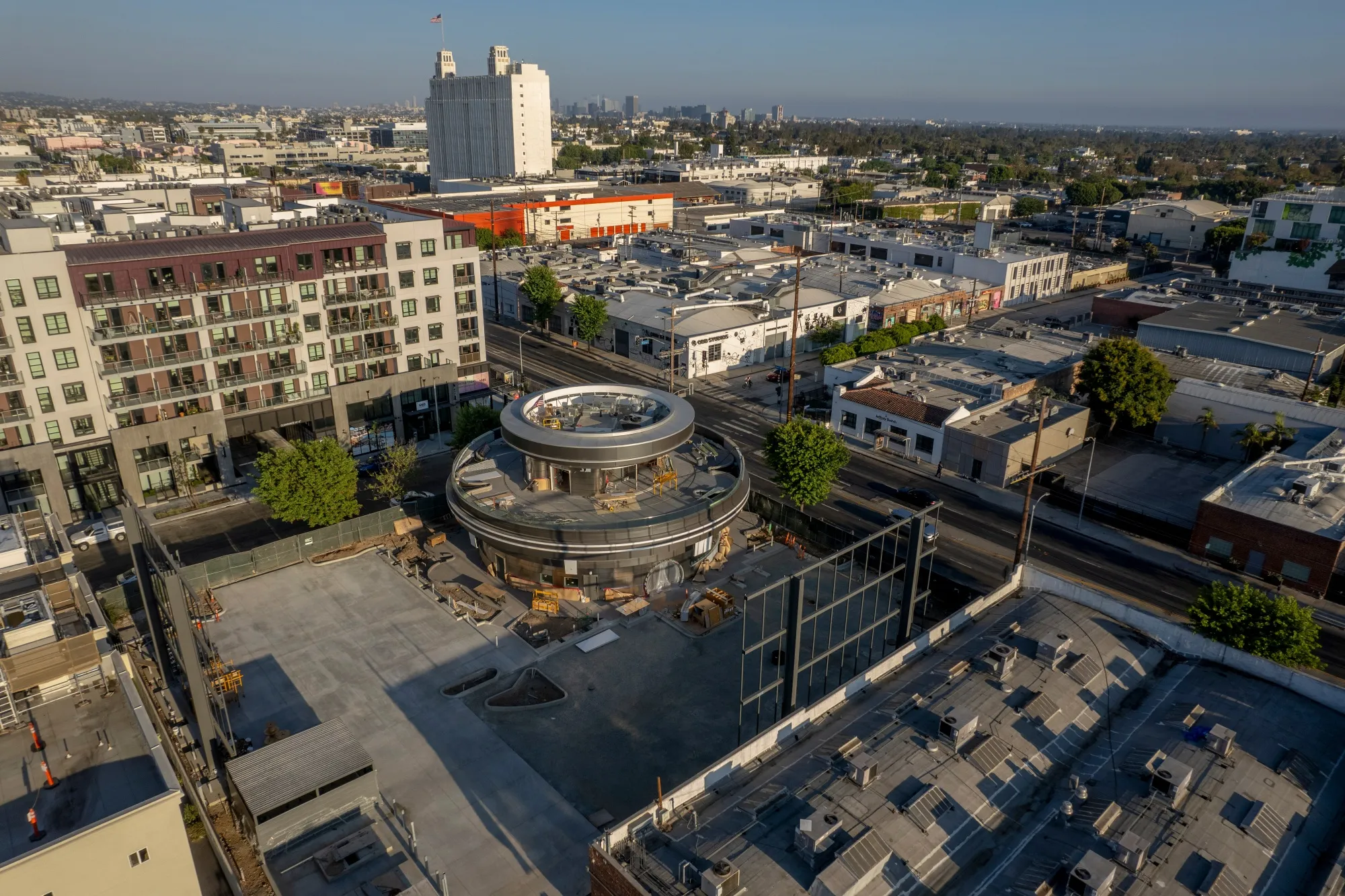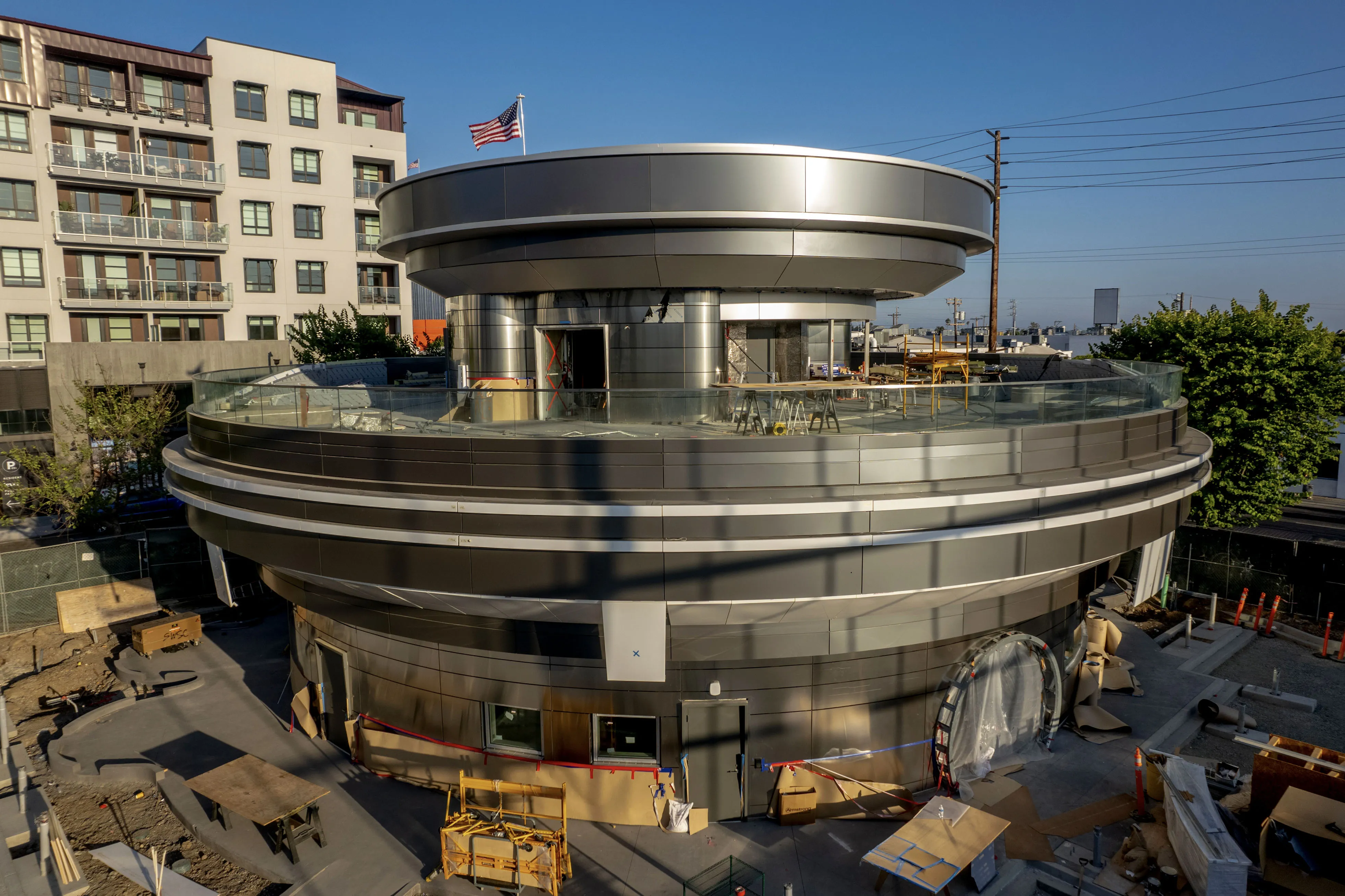 餐厅的开业日期尚未确定,自去年动工以来,特斯拉对餐厅提供的信息很少。摄影师:凯尔·格里洛特/彭博社这个餐厅的概念——位于圣塔莫尼卡大道,离日落大道和标志性的66号公路不远——体现了一种以汽车为中心的老派情感。