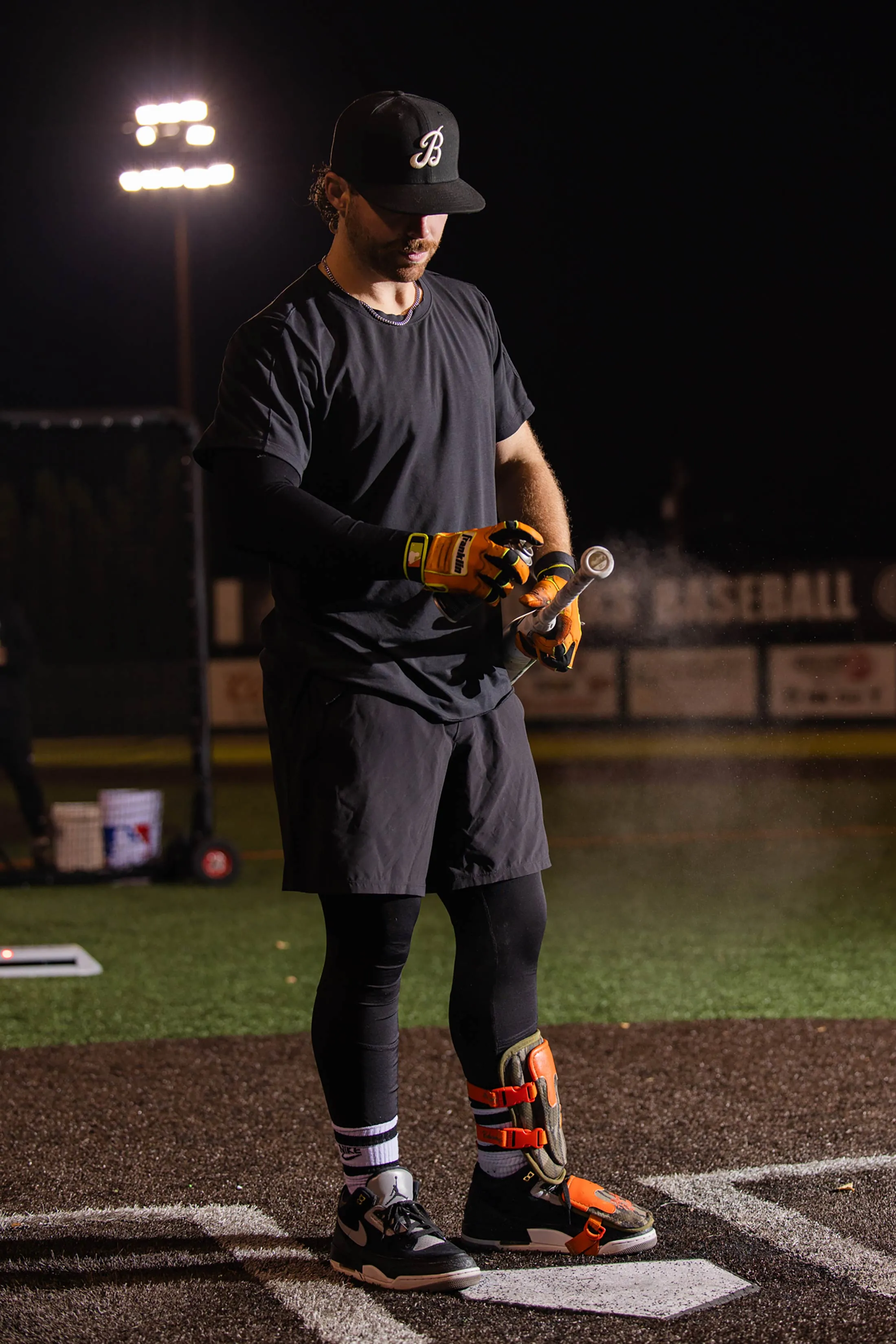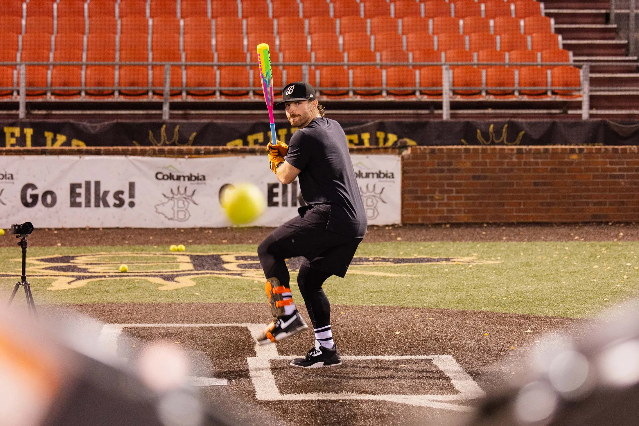 这就是为什么我在俄勒冈州的本德,度过这个凉爽的夏夜。作为一个棒球父亲兼商业记者,我想了解泰勒,这位十年前因为无法获得上场时间而退出这项运动的前第三替补大学接球手,如何意外地成为地球上最大的棒球棒影响者之一。近距离观看他击球,就像观看他的视频一样,令人着迷。身高5英尺10英寸的他,“看起来并不像一个能击出近600英尺棒球的人,”我心想。然后他的社交媒体经理卡姆·吉布森启动了投球机,这个想法瞬间消失。泰勒用如此猛烈的*啪!*击中球,听起来就像是从炮里射出来的。“声音太离谱了!”他赞同地说。他很快就把本垒打洒在了远超左外野围栏的一个仓库屋顶上。(棒球兄弟们更喜欢在晚上拍摄,因为周围的人更少,不容易被本垒打击中。晚上也更容易让摄像机追踪泰勒使用的黄色棒球的飞行轨迹,黄色的在晚上比白色的更显眼。)